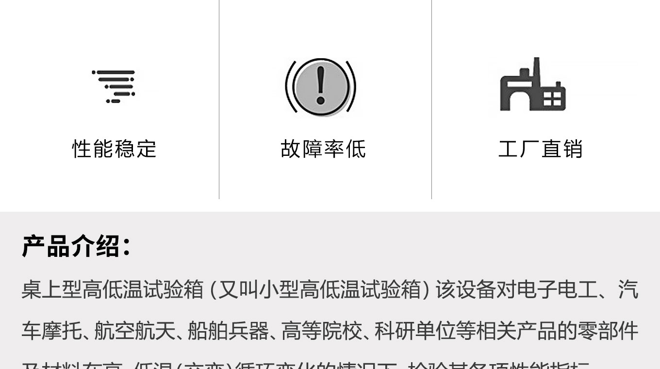 桌上型高低溫麻豆91在线免费观看(又叫小型高低溫麻豆91在线免费观看)該設備對電子電工、汽車摩托、航空航天、船舶兵器、高等院校、科研單位等相關產品的零部件及材料在高、低溫(交變)循環變化的情況下,檢驗其各項性能指標。