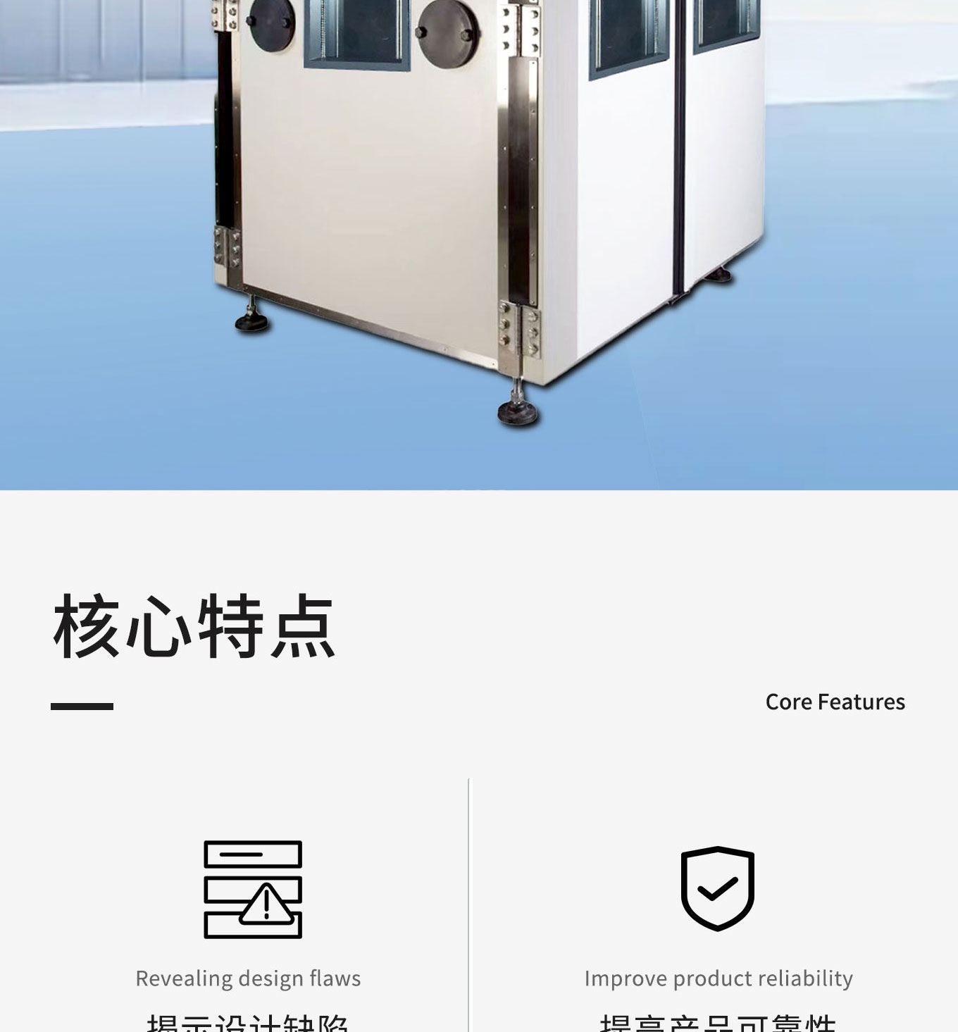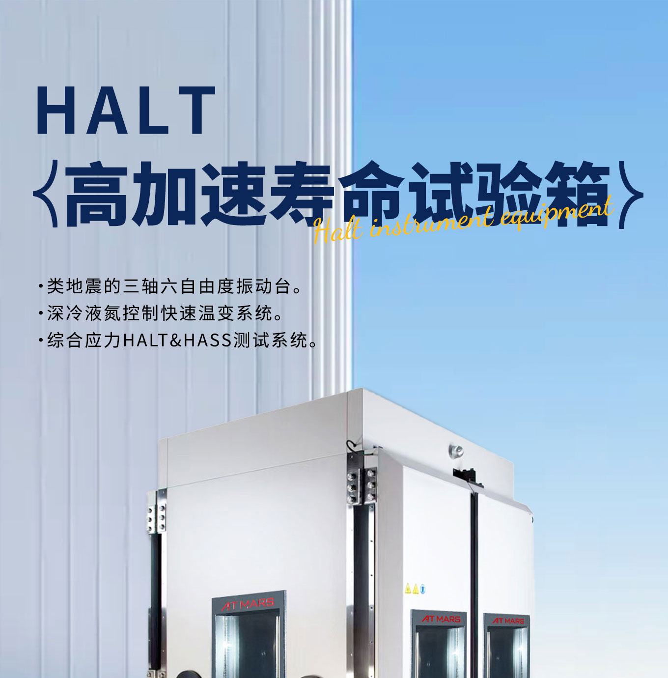 高加速壽命麻豆91在线免费观看(Highly Accelerated Life Testing,簡稱HALT試驗)是一種利用快速高、低溫變換的震蕩體係來揭示電子和機械裝配件設計缺陷和不足的過程。HALT的目的是在產品開發的早期階段識別出產品的功能和破壞極限,從而優化產品的可靠性。