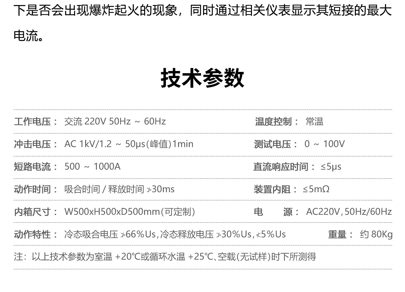 注:以上技術參數為室溫+20℃或循環水溫+25℃、空載(無試樣)時下所測得。