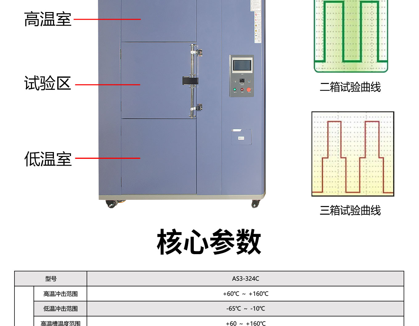 三槽式冷熱衝擊麻豆91在线免费观看 ,又稱高低溫衝擊麻豆91在线免费观看、冷熱衝擊麻豆91在线免费观看、冷熱衝擊試驗機,適用於對電工、電子及其他產品、零部件及材料進行高低溫溫度冷熱衝擊試驗的環境麻豆91在线免费观看設備,可滿足電工電子產品及軍用設備等環境試驗 - 高溫試驗/低溫試驗/溫度變化試驗/高低溫衝擊試驗/溫度衝擊試驗/冷熱衝擊試驗。