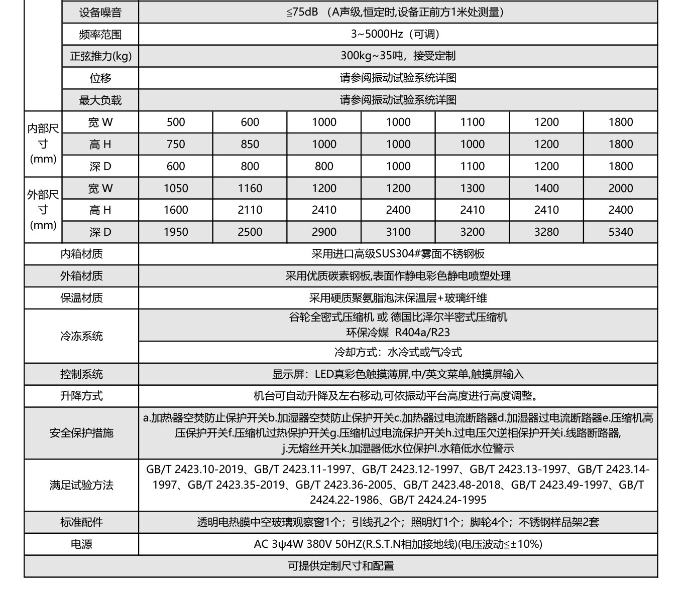 內箱尺寸:W(寬)1200 mm×H(高)1200mm×D(深)1200mm